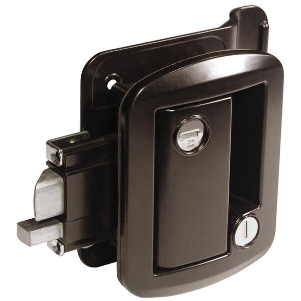 Esta fechadura importada é durabilíssima, com seu interior metálico e sua tranca que com toda certeza manterão o interior do seu RV seguro.