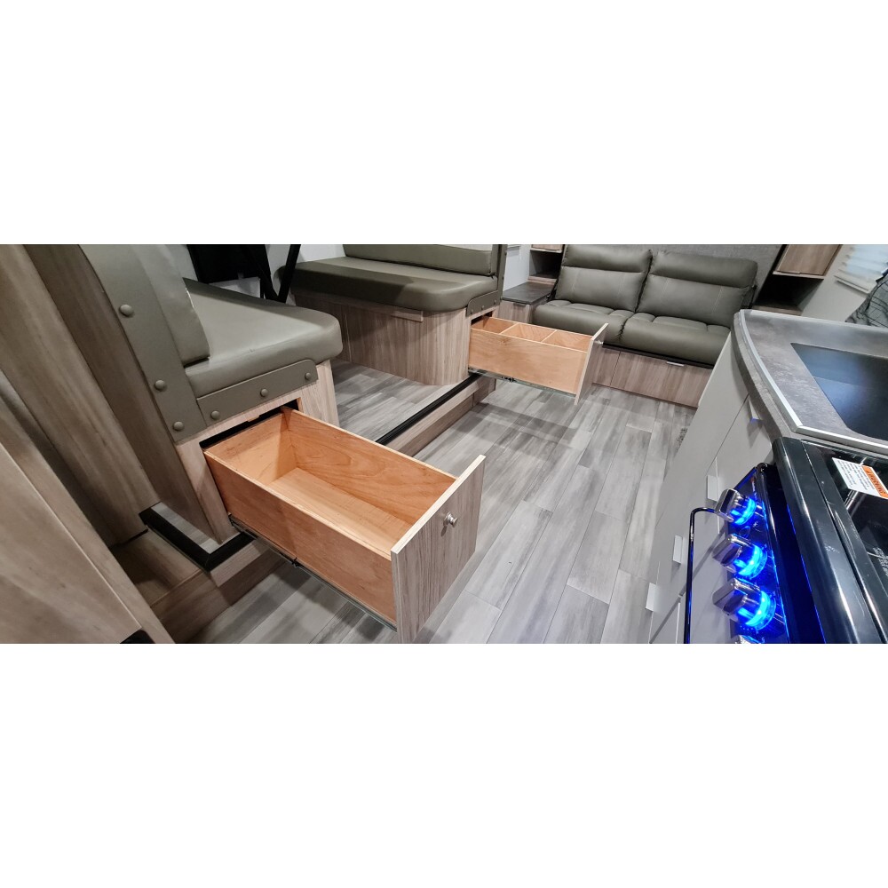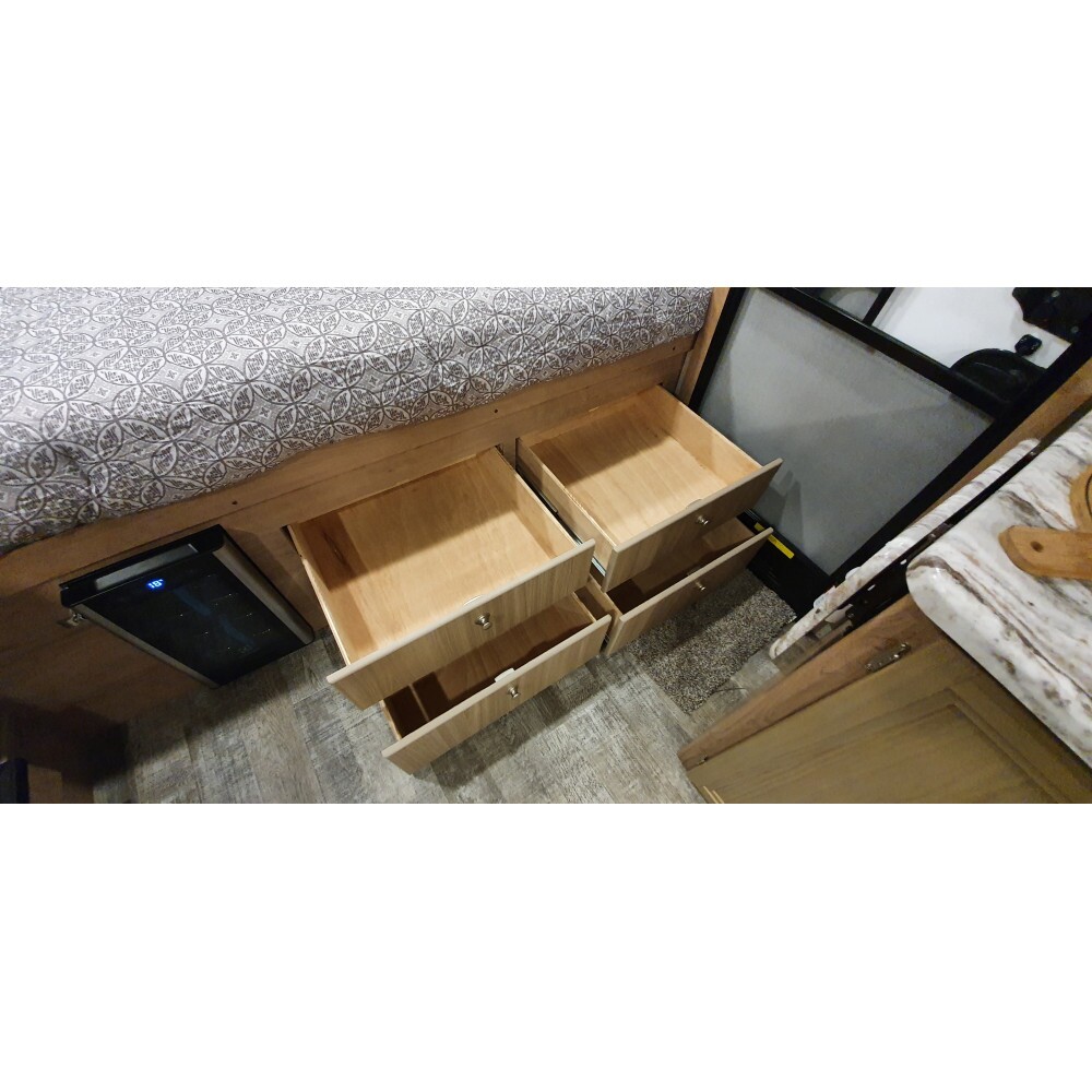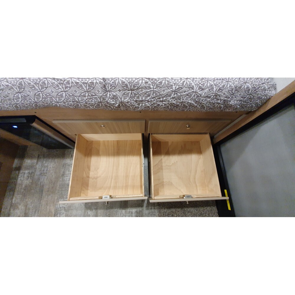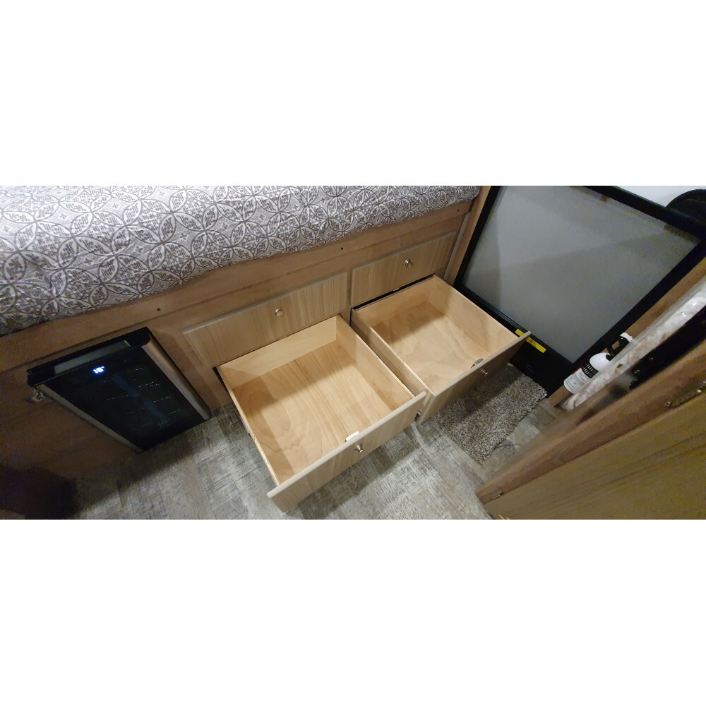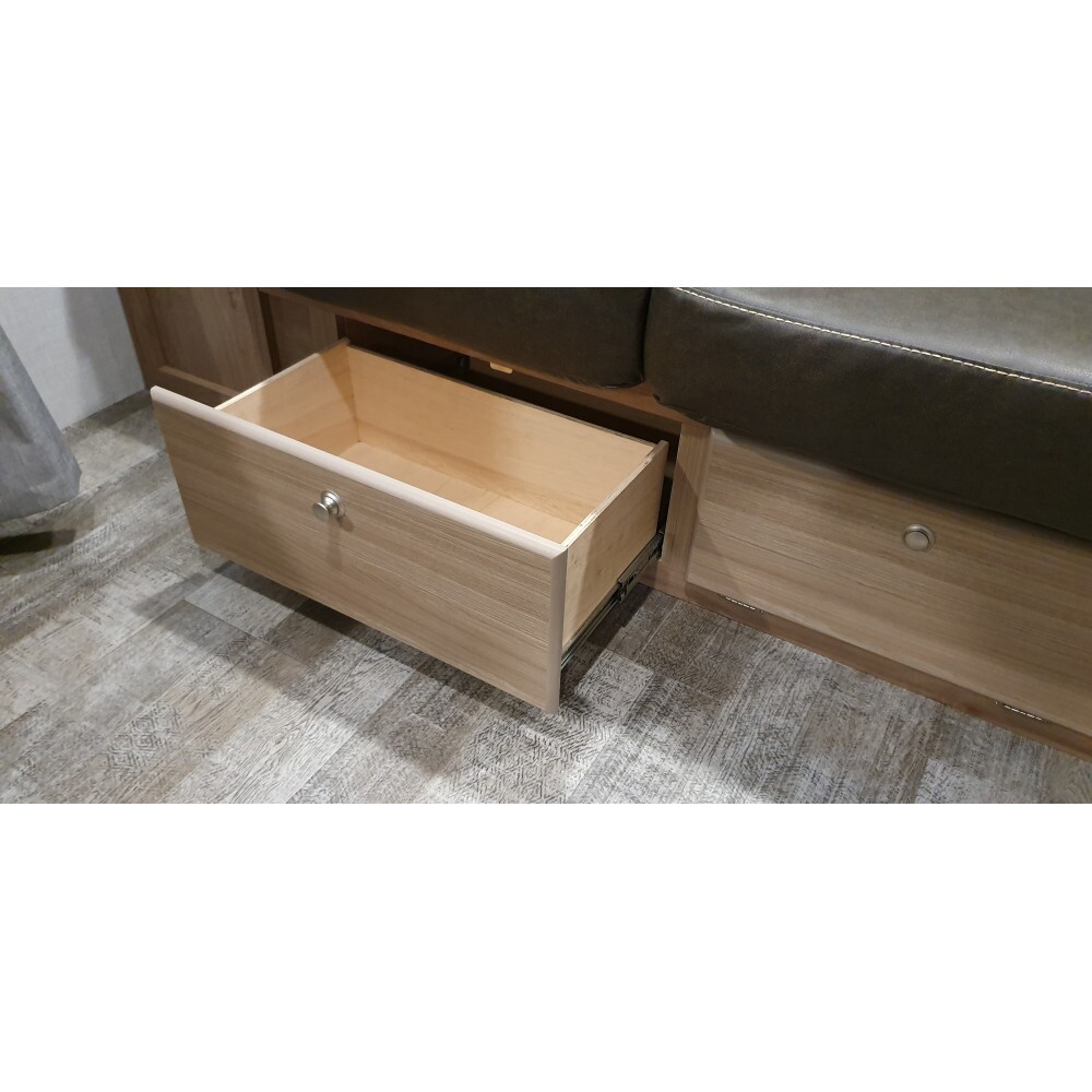 Gavetas com corrediça telescópica e trava pushlock